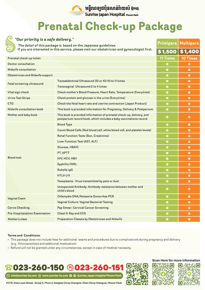 我们的助产士将在您整个怀孕过程中为您提供指导和辅助。她们将提供有益于您和宝宝的妈咪课堂。在每个课程里,您都会获得科学的保健知识、营养测试、孕期运动指导等有用的信息和建议以确保孕期健康。请联系我们以获取更多详细信息。