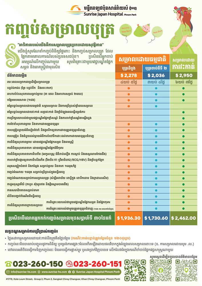 ឆ្មបរបស់យើងនឹងផ្ដល់ជូនអ្នកអំពីដំបូន្មានល្អៗអំឡុងពេលមានផ្ទៃពោះ។ ពួកគេនឹងផ្តល់ជូននូវវគ្គសិក្សាដែលមានប្រយោជន៍សម្រាប់ម្ដាយនិងកូនរបស់អ្នក។ នៅលើវគ្គនីមួយៗអ្នកនឹងទទួលបានព័ត៌មាននិងដំបូន្មានមានប្រយោជន៍អំពីរបបអាហារដែលផ្ដល់សុខភាពល្អនិងការធ្វើលំហាត់ប្រាណដើម្បីឱ្យអ្នកមានផ្ទៃពោះមានសុខភាពល្អ។