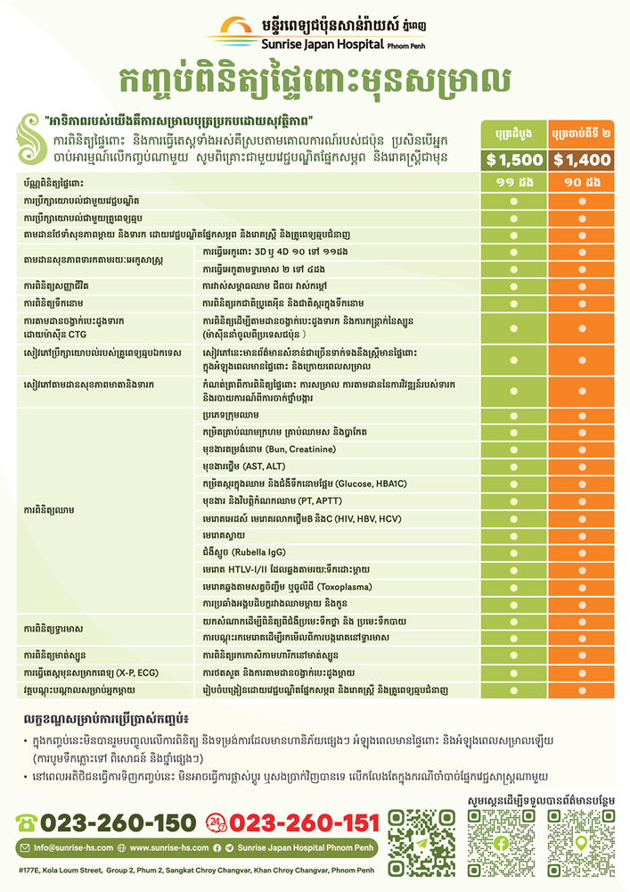 ឆ្មបរបស់យើងនឹងផ្ដល់ជូនអ្នកអំពីដំបូន្មានល្អៗអំឡុងពេលមានផ្ទៃពោះ។ ពួកគេនឹងផ្តល់ជូននូវវគ្គសិក្សាដែលមានប្រយោជន៍សម្រាប់ម្ដាយនិងកូនរបស់អ្នក។ នៅលើវគ្គនីមួយៗអ្នកនឹងទទួលបានព័ត៌មាននិងដំបូន្មានមានប្រយោជន៍អំពីរបបអាហារដែលផ្ដល់សុខភាពល្អនិងការធ្វើលំហាត់ប្រាណដើម្បីឱ្យអ្នកមានផ្ទៃពោះមានសុខភាពល្អ។
