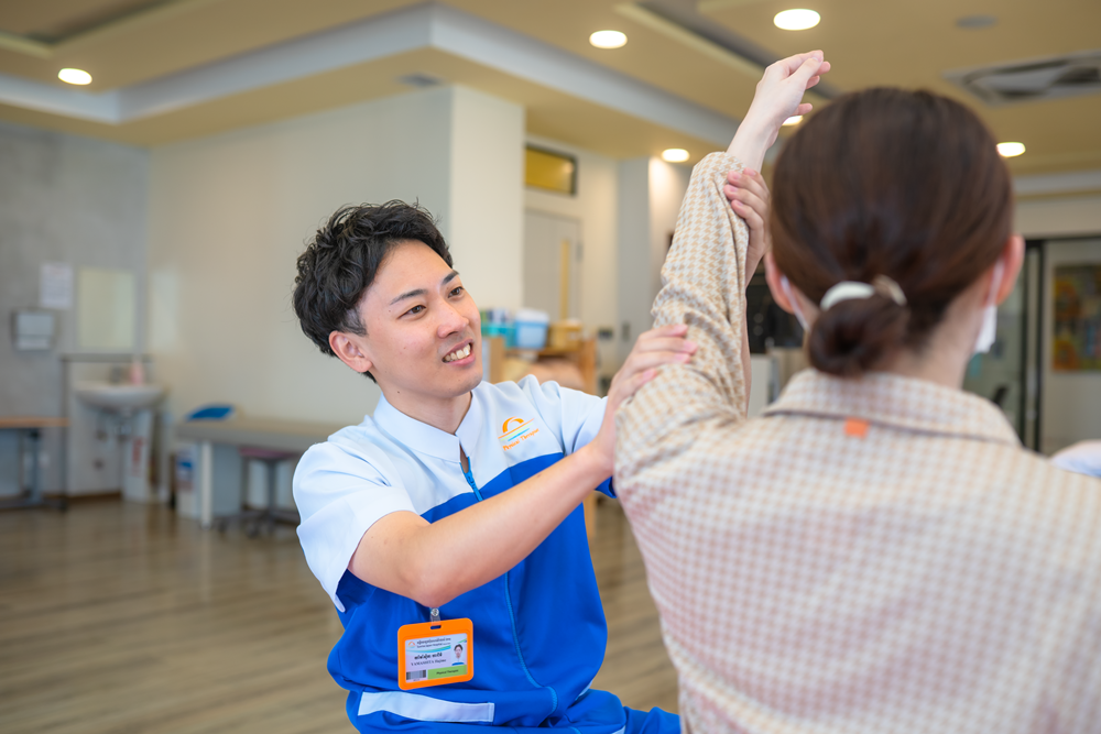 ផ្នែកស្តានិតិកាយសម្បទារបស់មន្ទីរពេទ្យយើងខ្ញុំ មានផ្តល់ការថែទាំជូនអ្នកជម្ងឺសំរាកពេទ្យ ដូចជា ការព្យាបាលដោយចលនា ព្យាបាលកាយសម្បទា ស្តាសមត្ថភាពនិយាយ ស្តាសមត្ថភាពស្តាប់។ បន្ទាប់ពីចេញពីមន្ទីរពេទ្យ ចំពោះអ្នកជម្ងឺដែលមានបំណងចង់តាមដានជម្ងឺបន្តគឺនឹងធ្វើការព្យាបាលក្នុងនាមជា(អ្នកជម្ងឺក្រៅ) ហើយសំរាប់អ្នកជម្ងឺដែលមានបំណងចង់អោយប្រស ើរឡើងក្នុងការរស់នៅ ខាងមន្ទីពេទ្យយើងខ្ញុំនឹង(ផ្តល់ការព្យាបាលថែទាំដោយចលនាដល់ផ្ទះលោកអ្នក)។ ក្នុងករណី មិនអាចធ្វើចលនាបាន រឺមិនអាចធ្វើចលនាបានដោយសារការឈឺចាប់ រឺមិនអាចនិយាយបានតាមគំនិតចង់និយាយ សូមធ្វើការទាក់ទងមកមន្ទីរពេទ្យ។