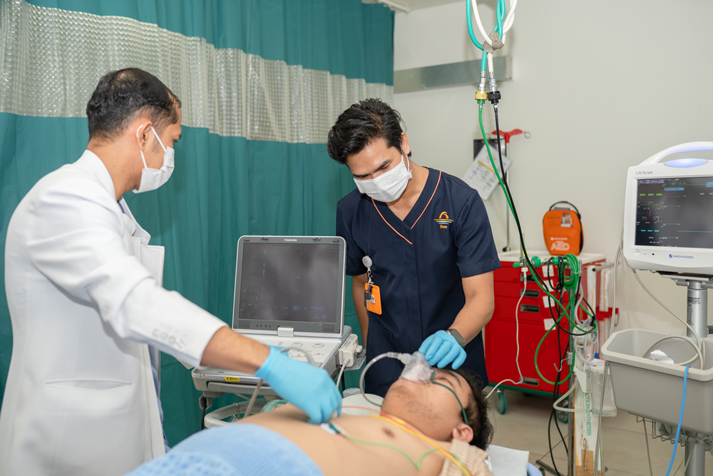 នៅក្នុងមន្ទីរពេទ្យយើងខ្ញុំមាន ផ្នែកសង្គ្រោះបន្ទាន់ រង់ចាំផ្តល់សេវាសង្រ្គោះ 24 ម៉ោងក្នុងមួយថ្ងៃ។យើងបានបង្កើតប្រព័ន្ធ ដែលអាចទទួលសង្គ្រោះបន្ទាន់គ្រប់ពេលវេលាចំពោះករណីគ្រោះថ្នាក់ចរាចរណ៍ និងគ្រុនក្តៅ។លើសពីនេះទៀត មន្ទីរពេទ្យមានរថយន្តសង្រ្គោះ វេជ្ជបណ្ឌិតដែលអាចចុះទៅពិនិត្យនិងការព្យាបាល ដល់ទីកន្លែងផ្ទាល់។